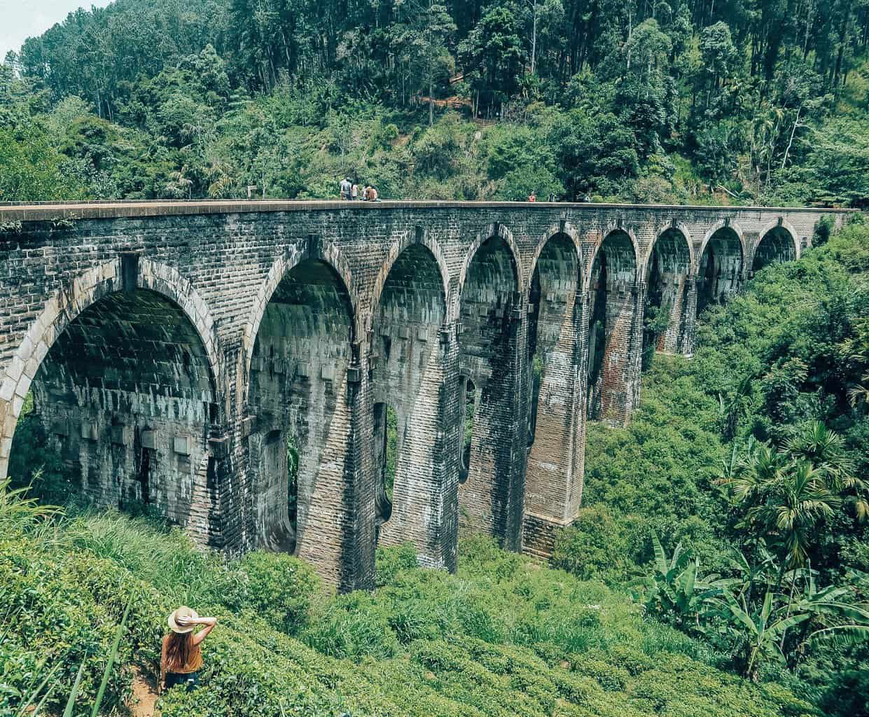 Nine Arch Bridge: A historic railway bridge between Ella and Demodara, surrounded by dense jungle and tea estates.